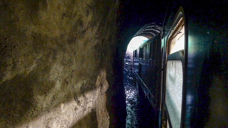 eines Erdrutsches die Bahn auf der Rückfahrt bei Ausfahrt eines Tunnels